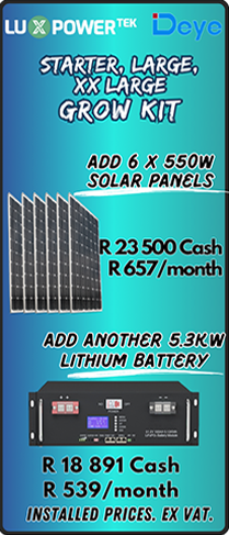 Our Grow Kits are for system expansion, including extra batteries, which allows for extended power during load shedding, and solar arrays (or strings), enabling greater savings on electricity bills.