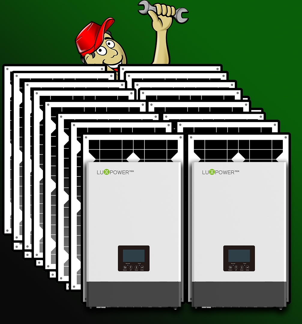 - 2 x Lux SNA5000 Inverters (5KW each, 2-year warranty each) – Total Power: 10KW