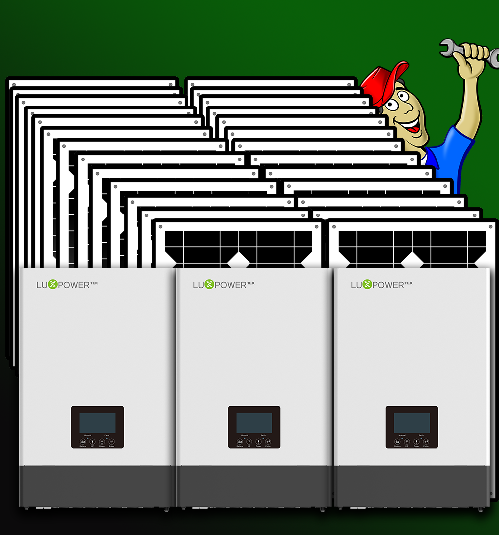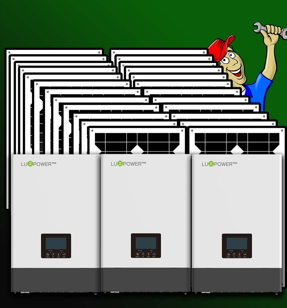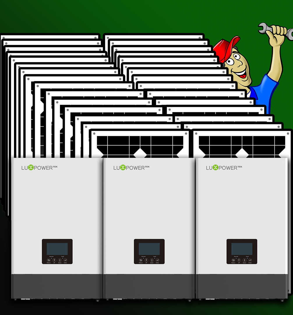 - 3 x Lux SNA5000 Inverters (5KW each, 2-year warranty each) – Total Power: 15KW
